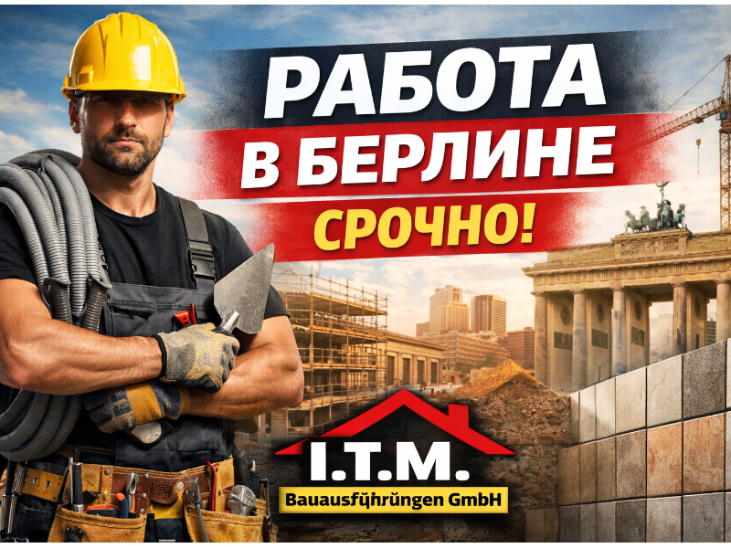 Работа в Берлине. Мы — Härte Bau GmbH Ищем индивидуальных специалистов: кровельщиков для плоских крыш и плотников (кровельные работы, черепица), сантехников, а также мастеров для внутренних работ. Мы предлагаем профессиональные условия, стабильную оплату и подробности при личном обращении. Более подробную информацию вы можете найти на нашем сайте hartebau.de. Обращайтесь, если вы ищете надежную работу в Берлине Пожалуйста, не звоните нам, если у вас нет опыта в этих областях. Если же вы — универсал с большим опытом, например, можете делать сантехнические, электрические, плиточные работы и у вас есть подтверждённый стаж, обязательно сообщите нам об этом — это будет большим плюсом!»
